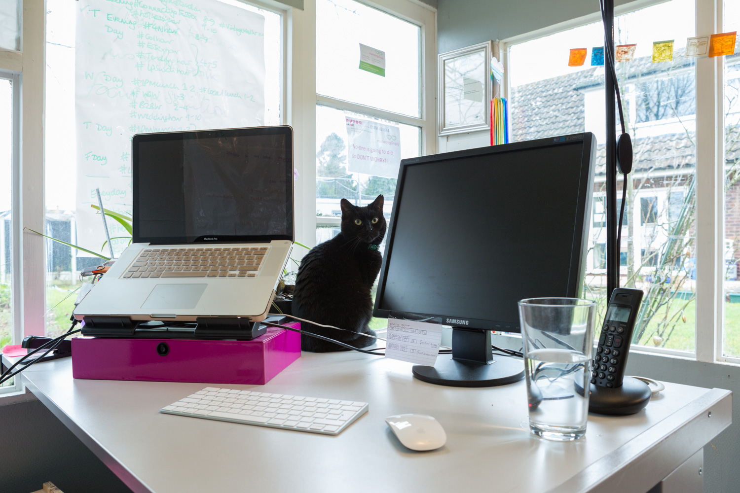 What is your favourite feature of your workspace? My cat enjoys me being around and shares the office space in the garden, which moves to under the parasol on nice sunny days.