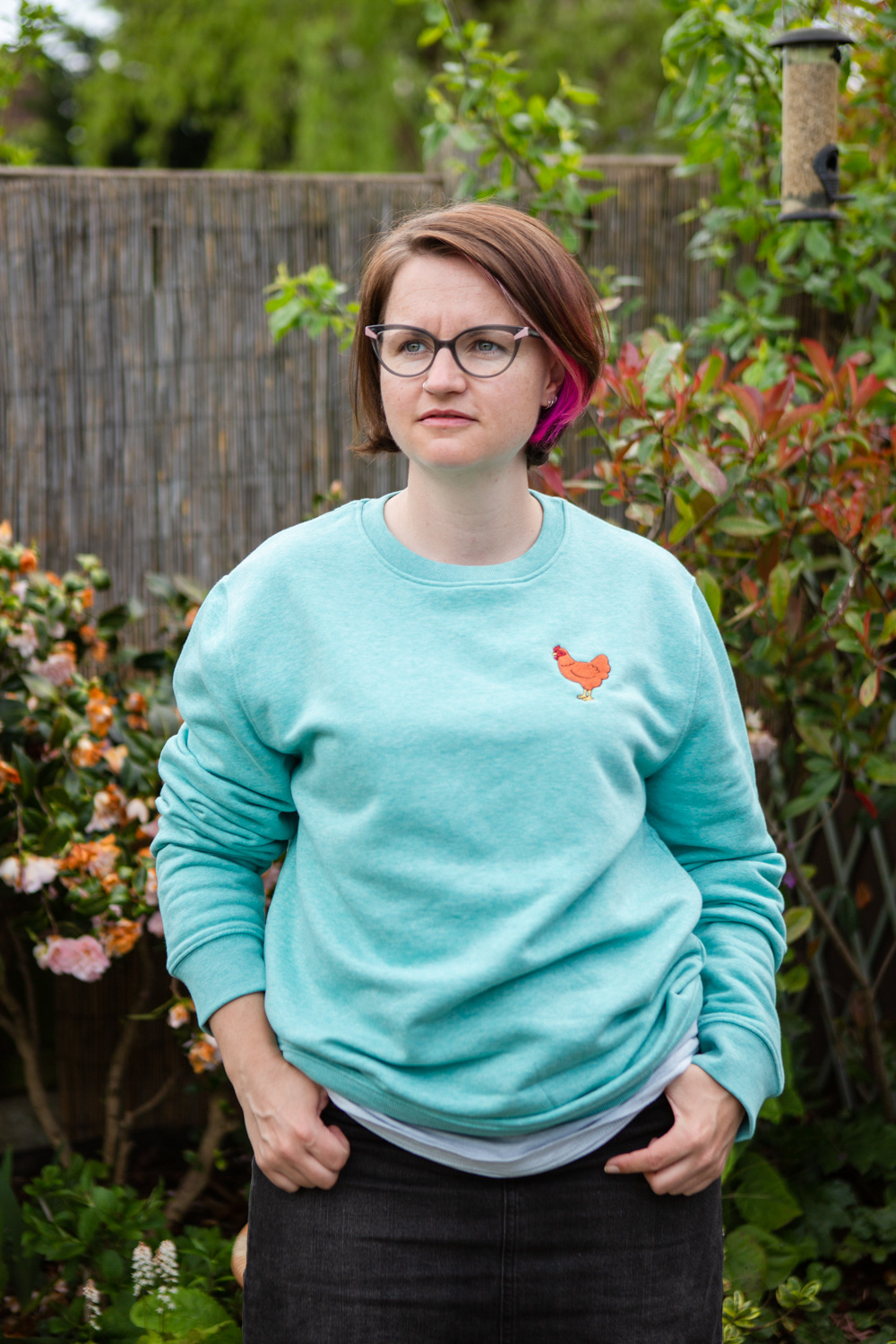 A little while ago, my friend Amy asked if I would be interested in helping with a project she was organising to raise money for the British Hen Welfare Trust (BHWT). Amy was working with woman-owned small businesses to design, make and sell a series of hen sweatshirts to raise money for BHWT, and I was happy to be able to help in a small way by photographing the lovely sweatshirts being modelled.
