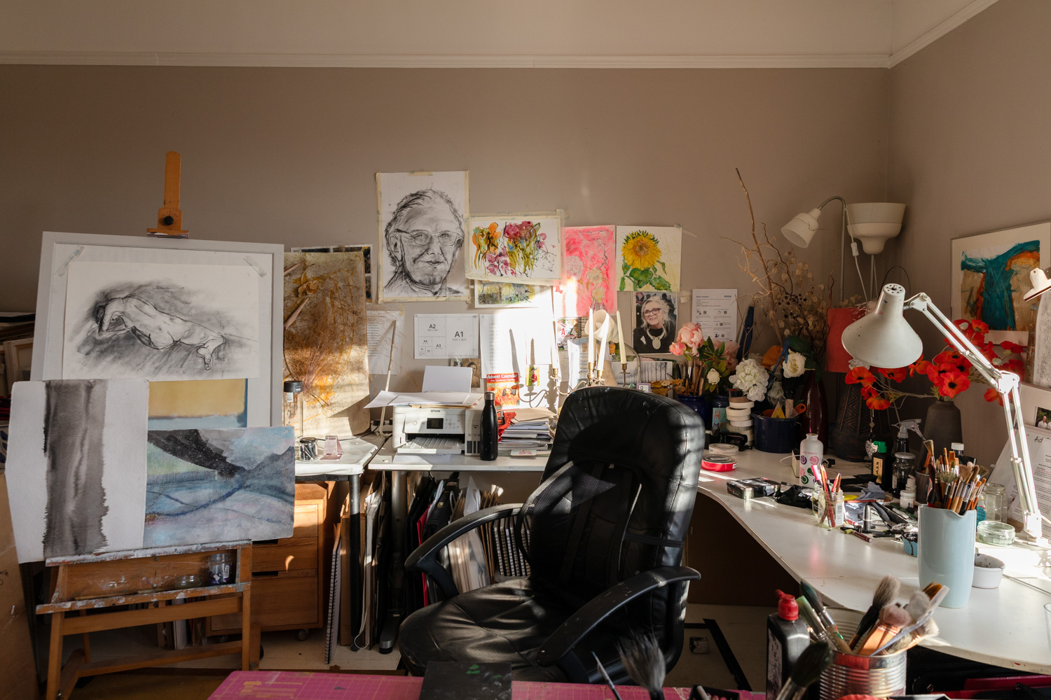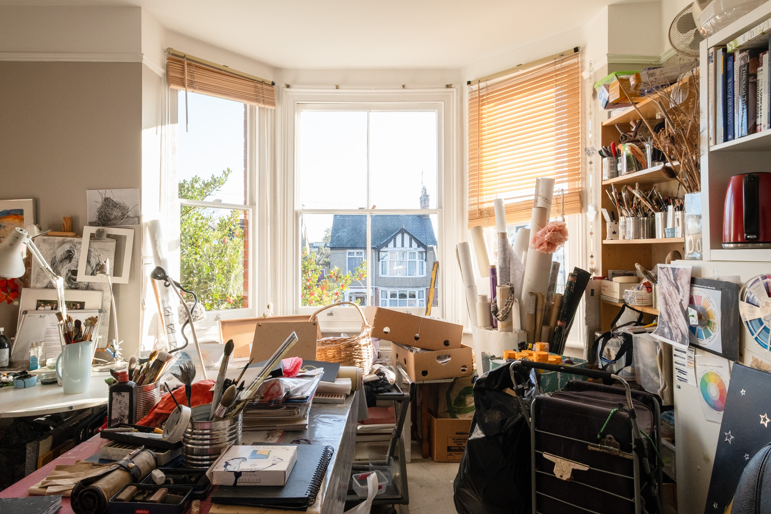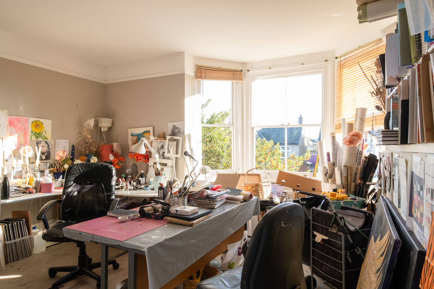 Is there anything you’re not so keen on/are there any other difficulties in working from home? Well, as I say, I think that I need a separate room. We’ve got a guest room, we could say, ‘right, no one can come and stay anymore’, take the bed out, and I have that, but that’s north facing, which I know studios ought to be, but they’re bloody cold. So I don’t know.  I like having family or friends to stay.