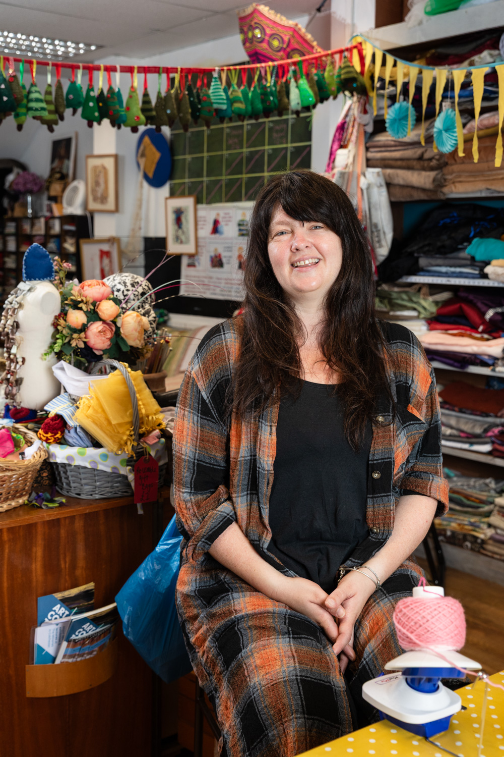 Kerry is a volunteer now but she started coming to Textile Collective as a visitor. “I was using it almost as a community centre, when my late husband passed away from Lewy body dementia, somewhere to go and be around people. I love the colours, the textures, I think it’s very mindful, sorting through fabrics, buttons. I love that everything is new [to us] all the time, because it’s donations and you have no idea what’s coming in.”