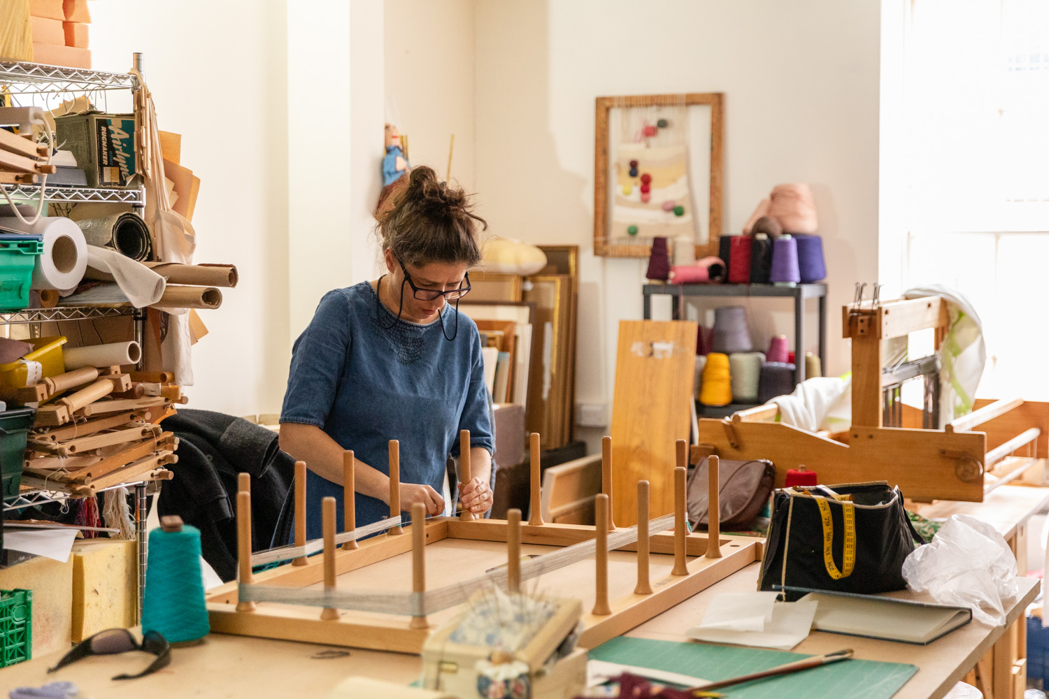 In a busy shopping street in the middle of Colchester, overflowing with colourful fabric, haberdashery and ‘bits and pieces’, Textile Collective is a second-hand textile shop and community sewing studio stocked exclusively from donations, which are sold to people in the community at low prices. Their upstairs resource space has sewing machines, overlockers and looms that are available for use and they run free and low-cost workshops so more people can have the opportunity to make and repair clothing or be creative with textiles without having to spend a lot of money.